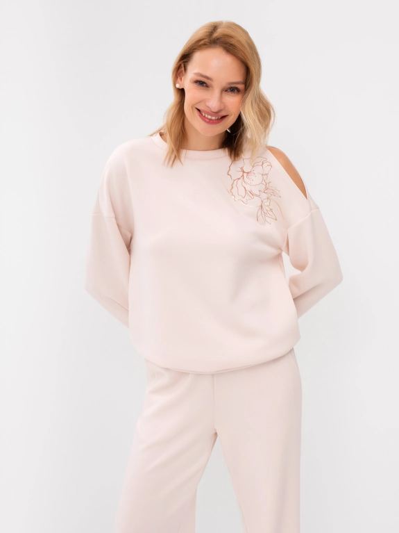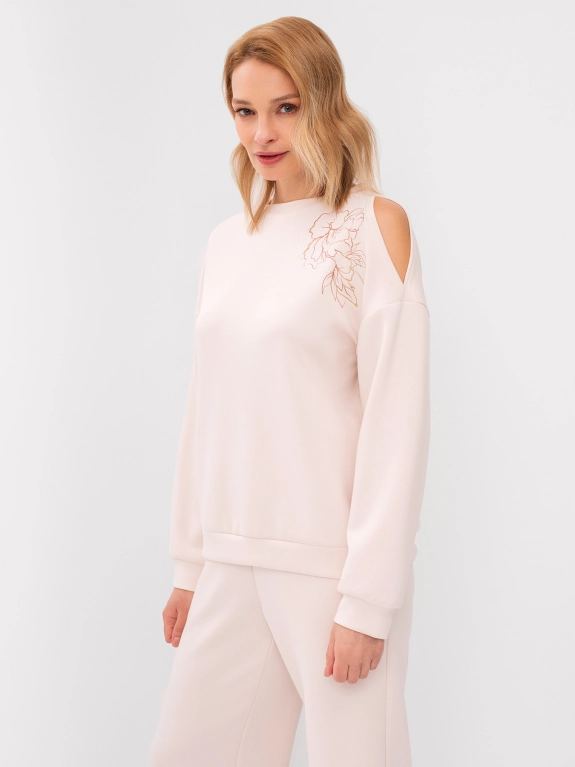 Джемпер с разрезом на плече и вышивкой