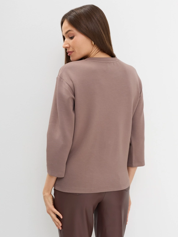 Свитшот из района с фактурной вышивкой. Круглый вырез. Прямой силуэт. Спущенное плечо. Укороченный рукав.