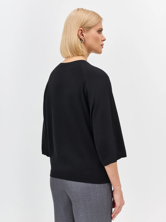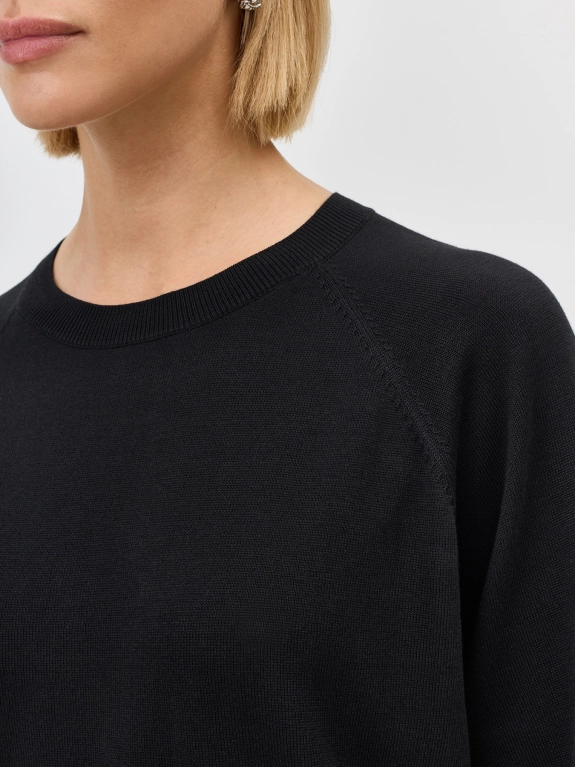 Вязаный джемпер из смеси модала и хлопка. Свободный силуэт. Укороченные рукава реглан. Круглый вырез.
