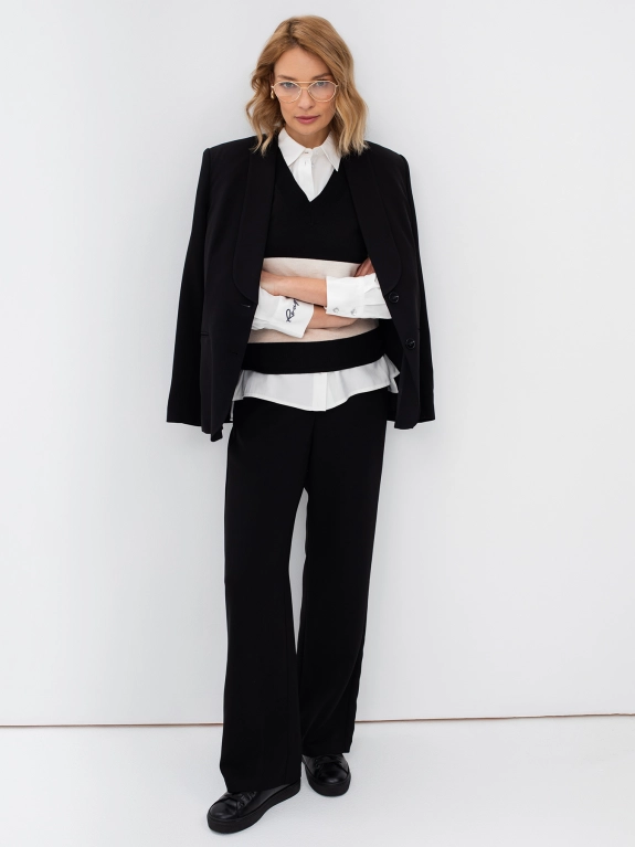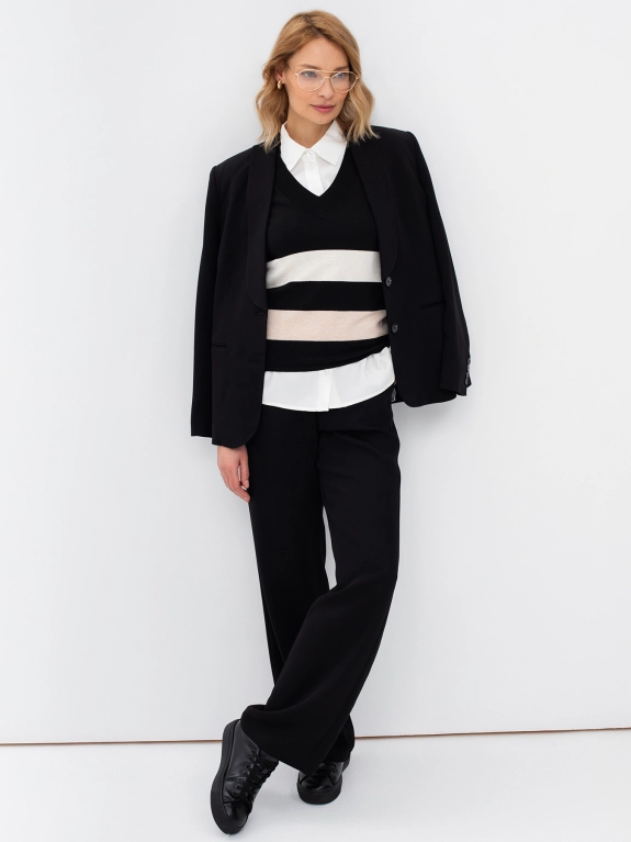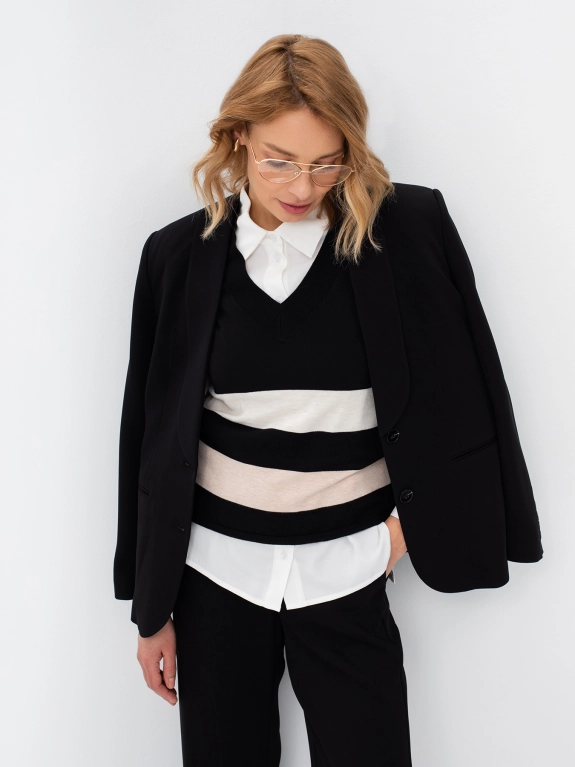 Удлиненный жилет контрастными полосками. V-образный вырез.