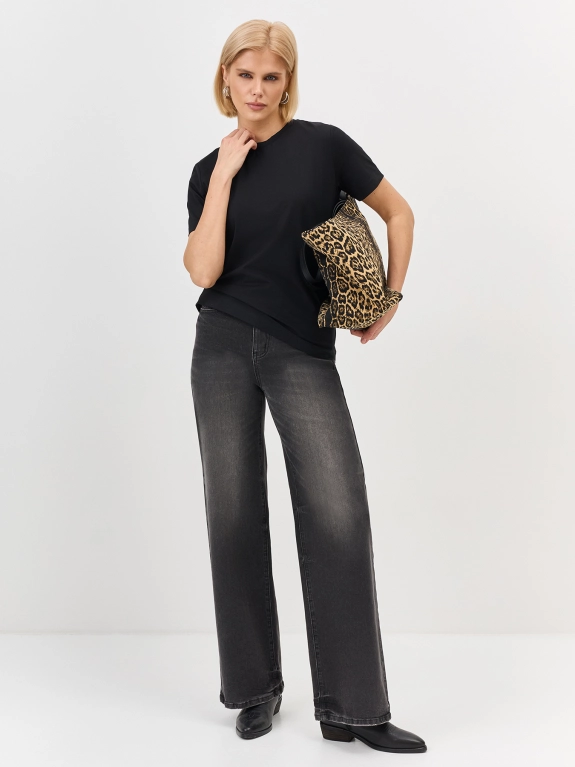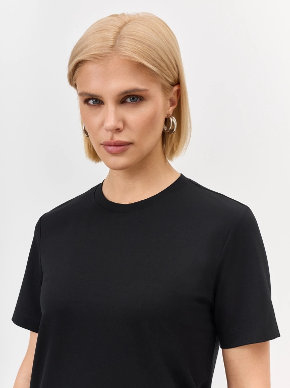 Базовая футболка из смесового модала и хлопка. Прямой силуэт. Круглый вырез. Короткий рукав.