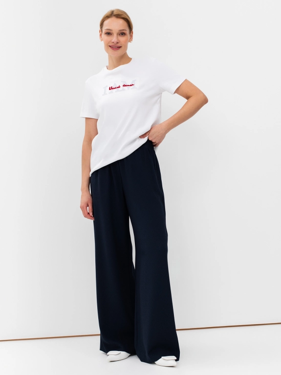 Футболка с объемным бархатным принтом. Круглый вырез. Прямой крой.
