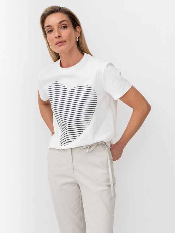 Футболка с контрастной аппликацией ''Сердце''. Крулый вырез. Прямой силуэт.