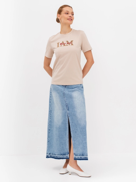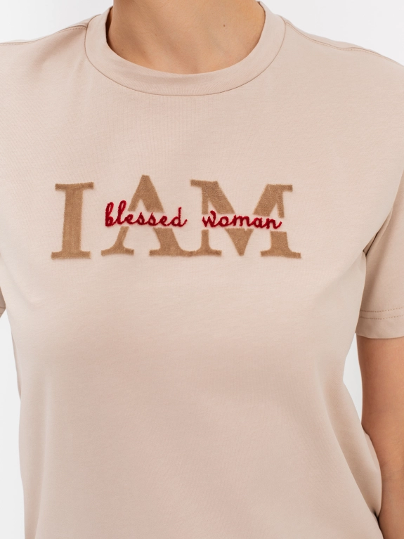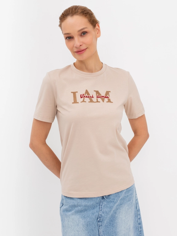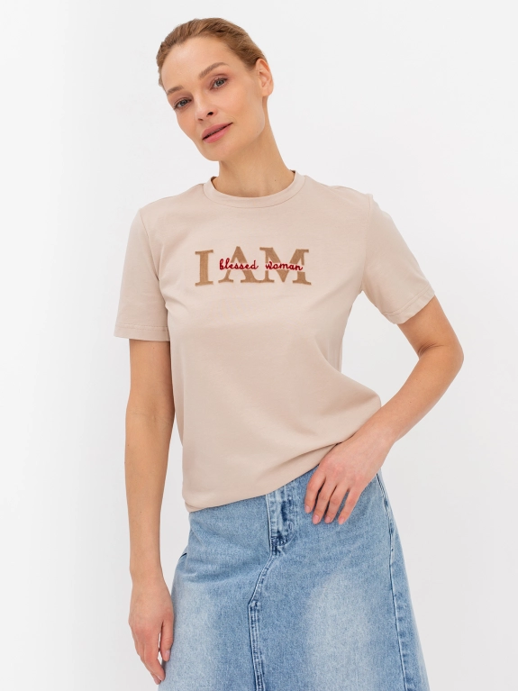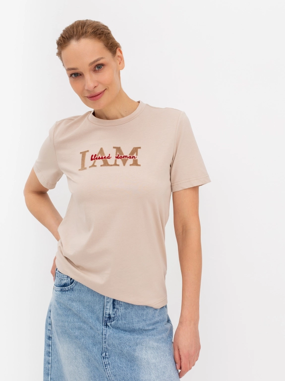 Футболка с объемным бархатным принтом. Круглый вырез. Прямой крой.