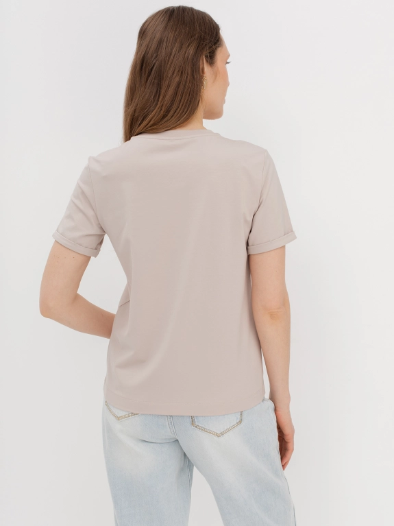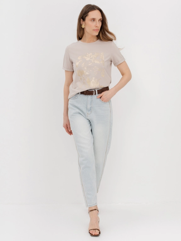 Футболка с объемным фольгированным принтом. Круглый вырез. Прямой силуэт.