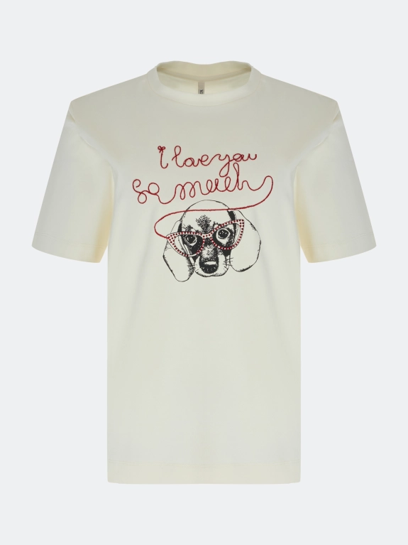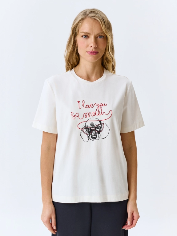Футболка с принтом и вышивкой