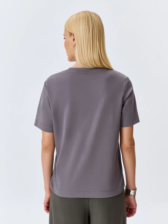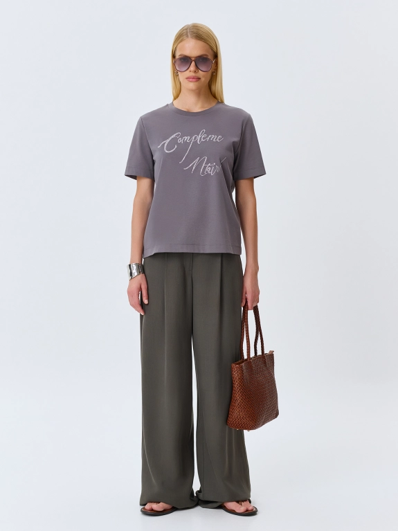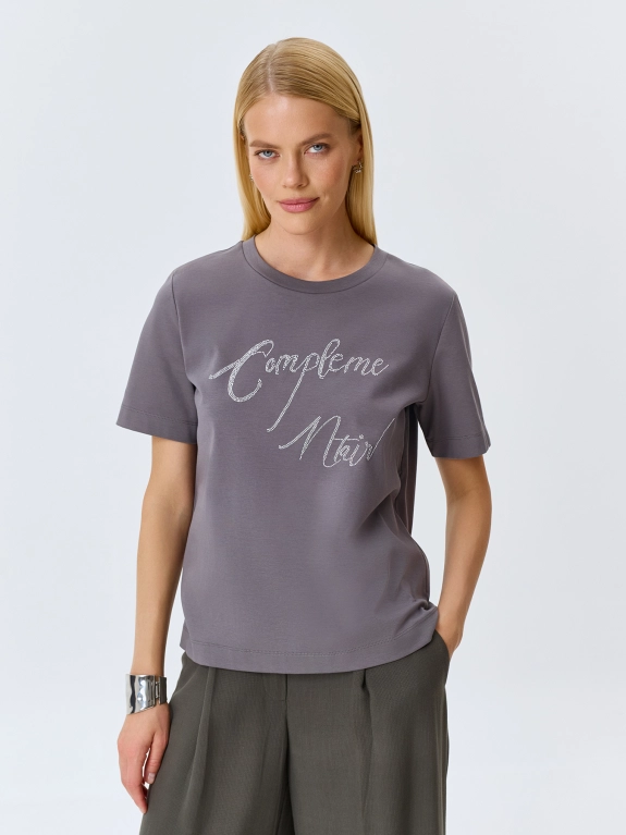 Футболка с принтом из сверкающих страз. Прямой силуэт. Круглый вырез. Короткие втачные рукава. В составе 100% хлопок.