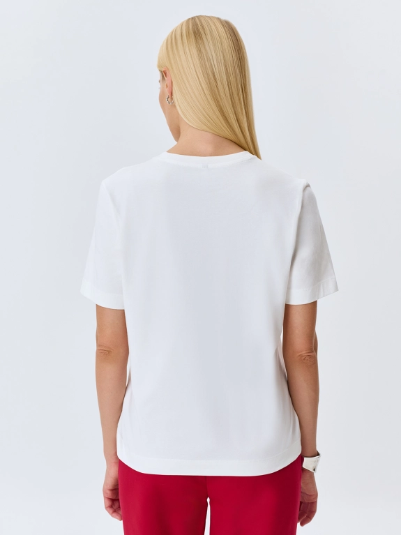 Футболка с контрастным шрифтовым принтом. Прямой силуэт. Круглый вырез. Короткие втачные рукава. В составе хлопок.