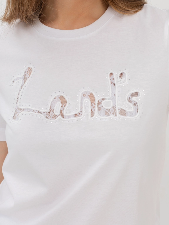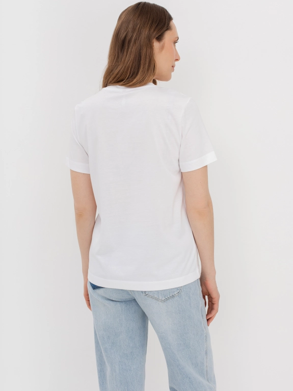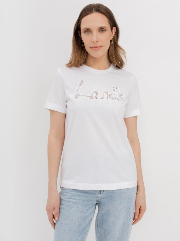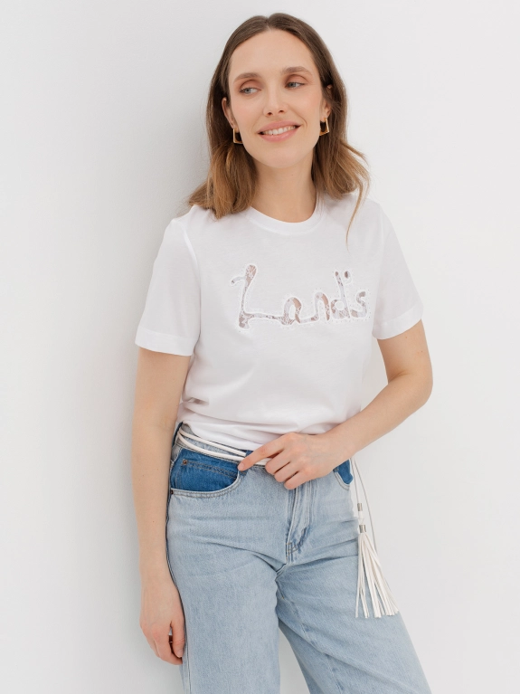 Футболка с вышивкой-аппликацией на передней половинке. Прилегающий силуэт. Круглый вырез.