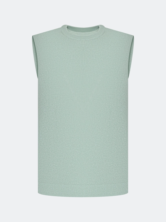 Вязаный топ из модала и хлопка. Прямой силуэт. Круглый вырез. Дополнен рибом по горловине и низу изделия.