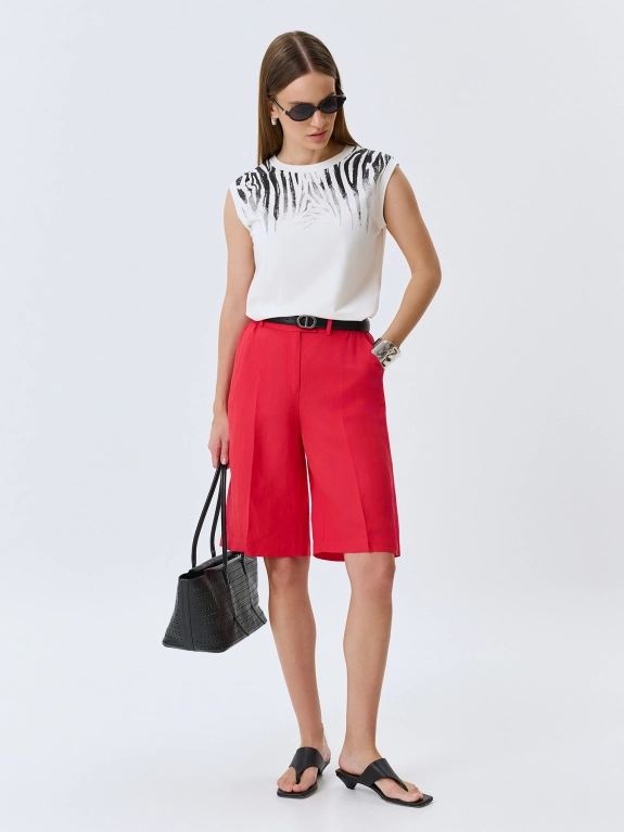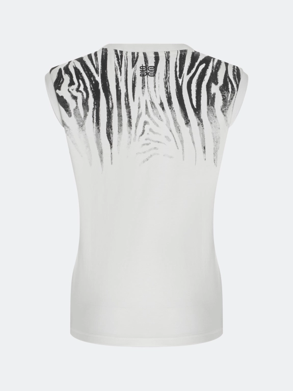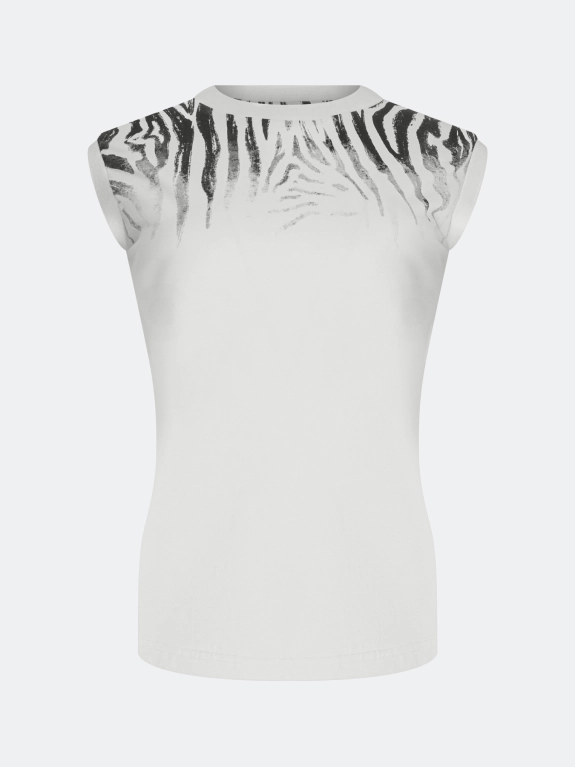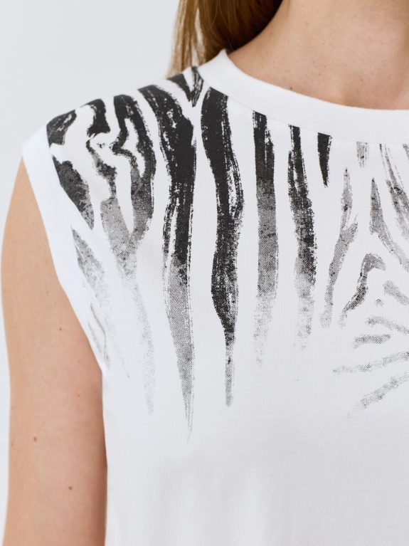 Топ из мягкого модала и хлопка с анималистичным принтом. Полуприталенный силуэт. Круглый вырез.
