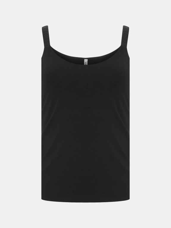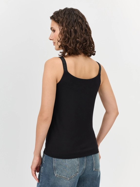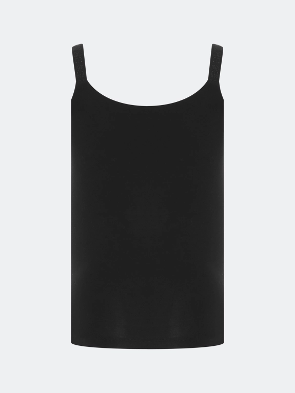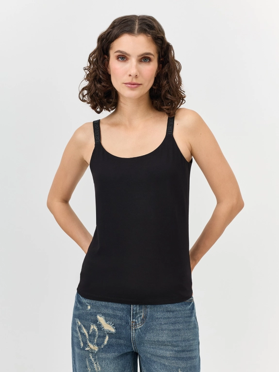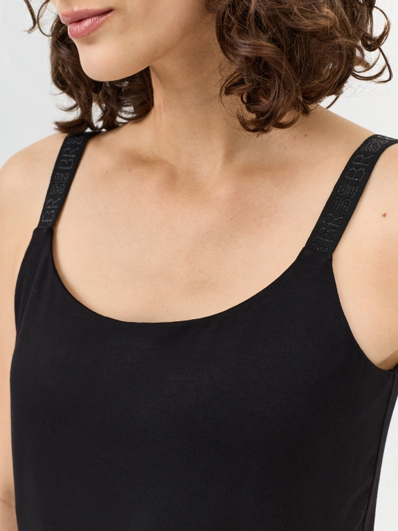 Топ с брендированными бретельками. Приталенный силуэт. Глубокий круглый вырез. В составе бамбуковое волокно и спандекс.