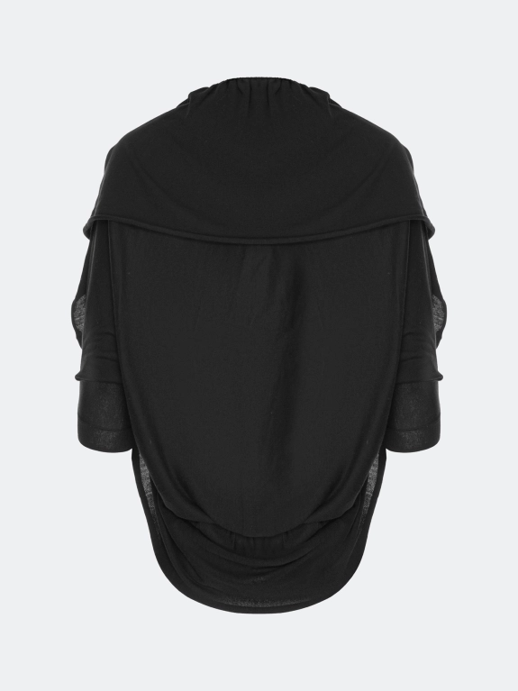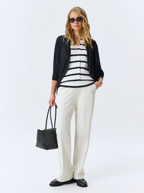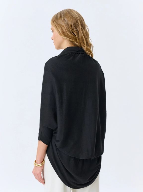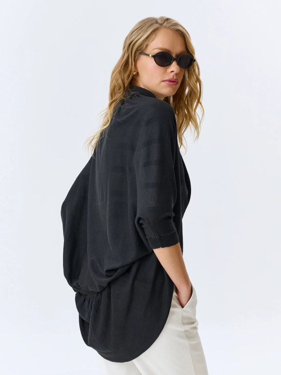 Вязаный кардиган-болеро из мягкого модала и хлопка. Свободный силуэт. Удлиненная линия спинки. Длинные свободные рукава с манжетами по низу.