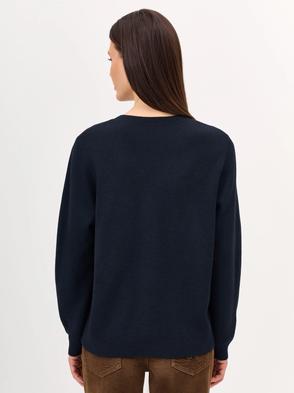 Жакардовый вязаный кардиган с контрастными строчками. Прямой силуэт. Круглый вырез. Застежка на контрастные металлические пуговицы. Имитация нагрудного кармана. В составе шерсть. Комплект с арт. 5257748.