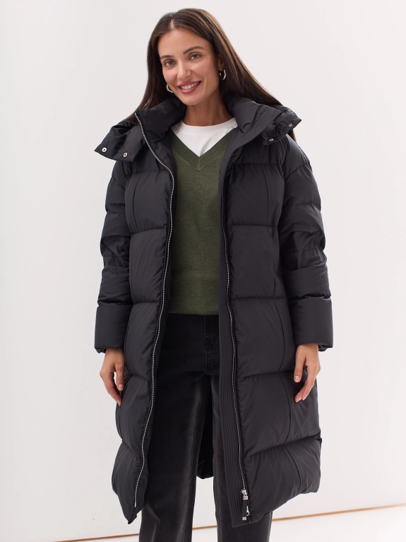 Удлиненный пуховик с акцентными складками