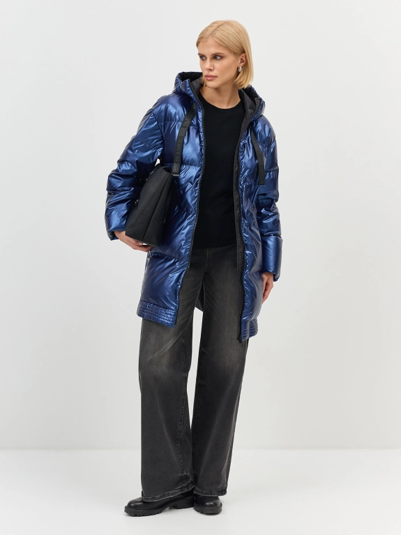 Укороченный пуховик с эффектом металлик