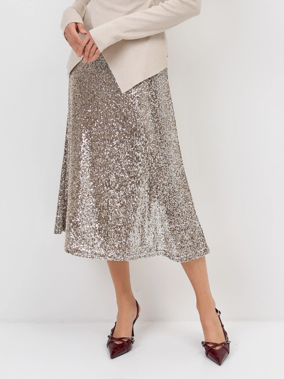 Яркая юбка-миди с искрящимися пайетками