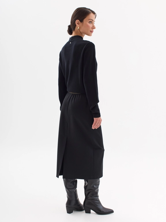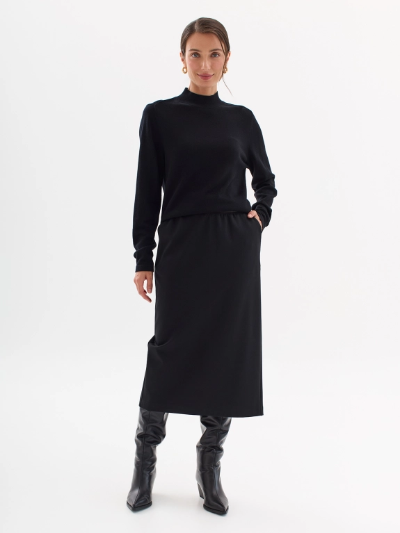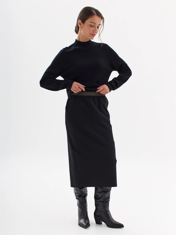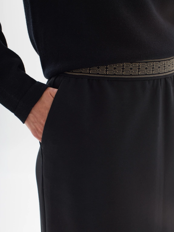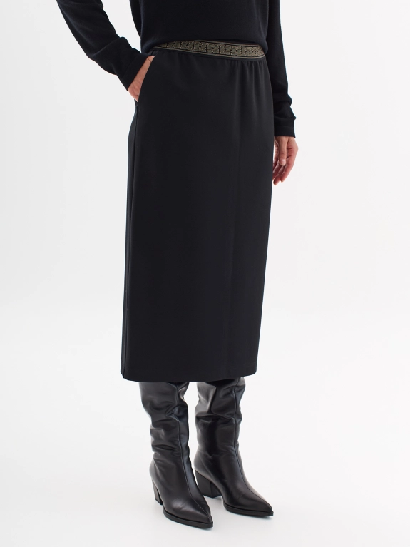 Юбка-карандаш из джерси с узором по поясу. Прямой силуэт. Резинка по талии. В составе район и нейлон. Боковые карманы в швах.
